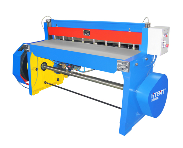 This is a Q11-3X1600 pneumatic shearing machine that can cut a maximum plate thickness of 3 millimeters and a maximum plate width of 1.6 meters. The pneumatic system provides power to drive the blade up and down to cut metal sheet metal. When the clutch pedal is pressed, the pneumatic system is activated, and the upper blade quickly moves down to cooperate with the lower blade to cut the sheet metal. After completion, the upper blade returns to its initial position under the action of the pneumatic system and waits for the next operation.